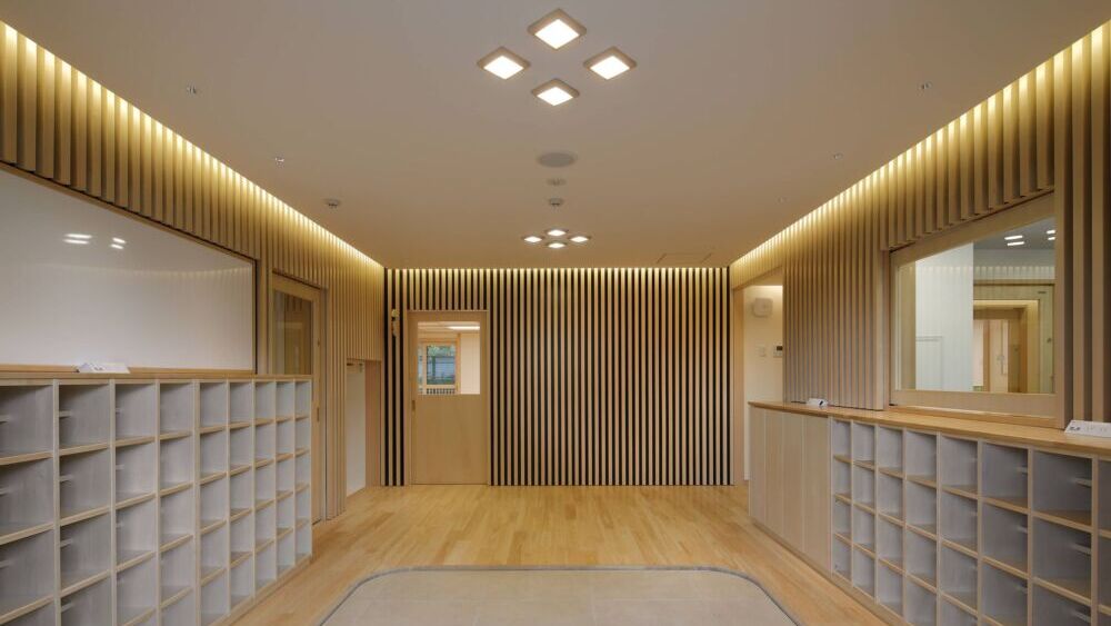 木材をふんだんに使い、自然光が入る温かみのある保育室