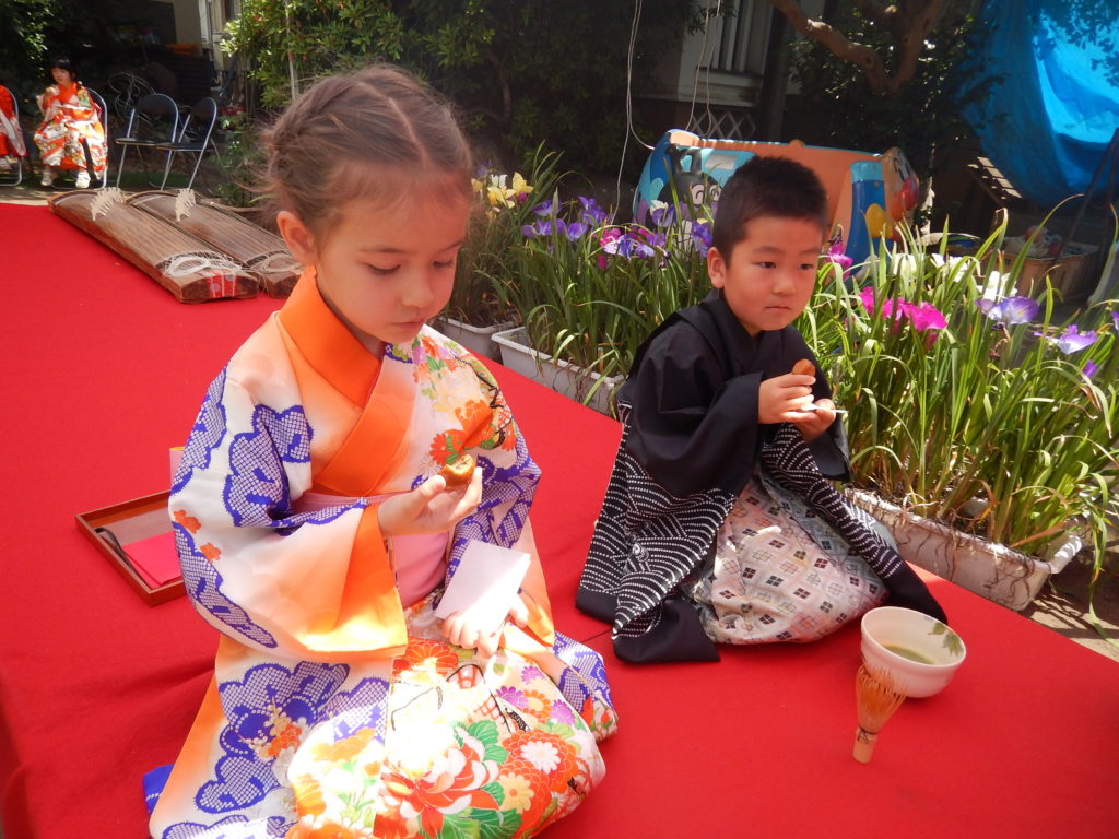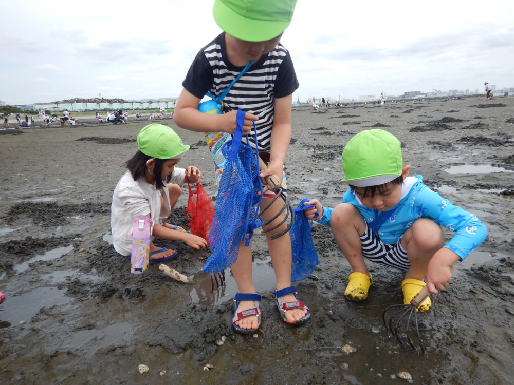4月には進級式があります。花祭りは毎年行う行事。お釈迦様のお誕生日をお祝いして、甘茶をおかけします。遠足は、足立生物園に行きました。潮干狩りは、本当にみんな楽しそう。ぼたんやしょうぶなど花を慈しむという日本文化を楽しみました。