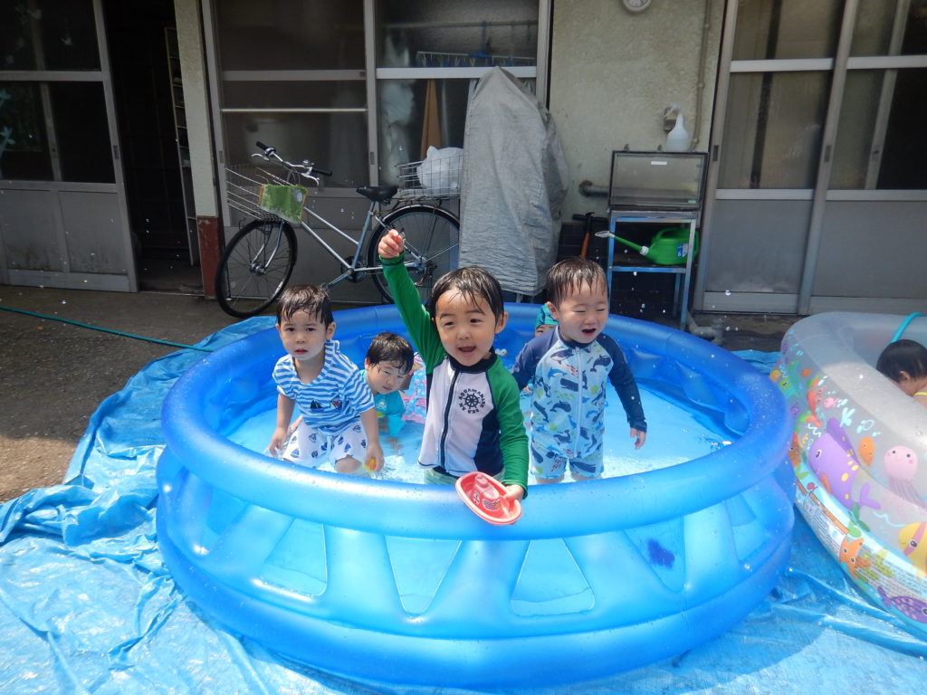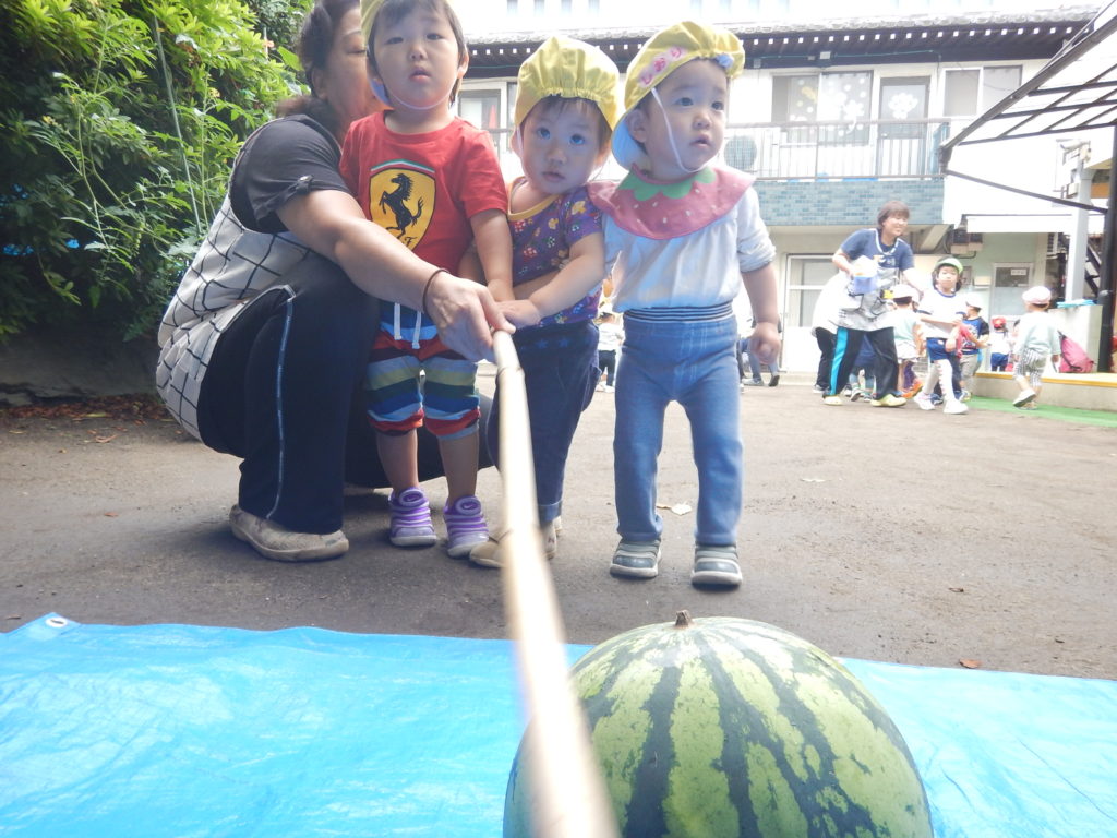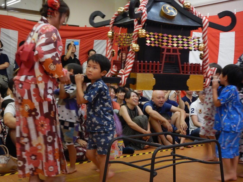 7月には5歳児クラスのお泊まり保育があります。親と離れてお友達と一緒に過ごします。お料理をしたり、きもだめしにチャレンジしたり、花火をやったり、いろいろなイベントもあります。8月には夏祭り。縁日や御神輿、盆踊りなど子どもたちはとても楽しみにしています。9月には、園児のおじいちゃん、おばあちゃんたちと一緒に食事をする敬老給食や、 運動会があります。