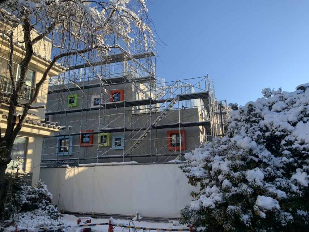 昨日の雪はすごかったですね😅 新園舎の壁が見えるようになりました。コンクリートの壁にワンポイントで窓枠にカラーが付いています。 実際、色がついているのを見ると、とてもきれいです。 この投稿をInstagramで見る 立華学苑(たちばながくえ... -