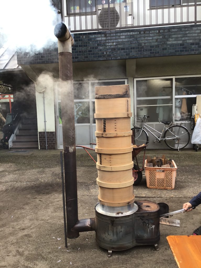 今年も餅つき会を開催いたしました。 園児たちは、蒸している蒸籠や、杵・臼にも興味津々でした。 園長が餅をついている様子をしっかり見ていました。 いつも、苦手で食べないという食材も残さず、おかわりといっている園児が多くてびっくりしました。 -