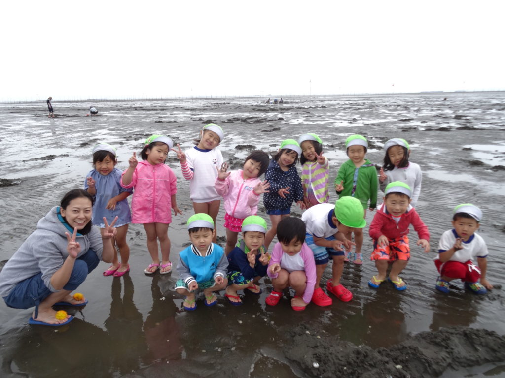 ゆき組、つき組で潮干狩りに行きました。 天気も良く、あさりをいっぱいとることができました。 園児たちも一生懸命、潮干狩りをしていました。 -