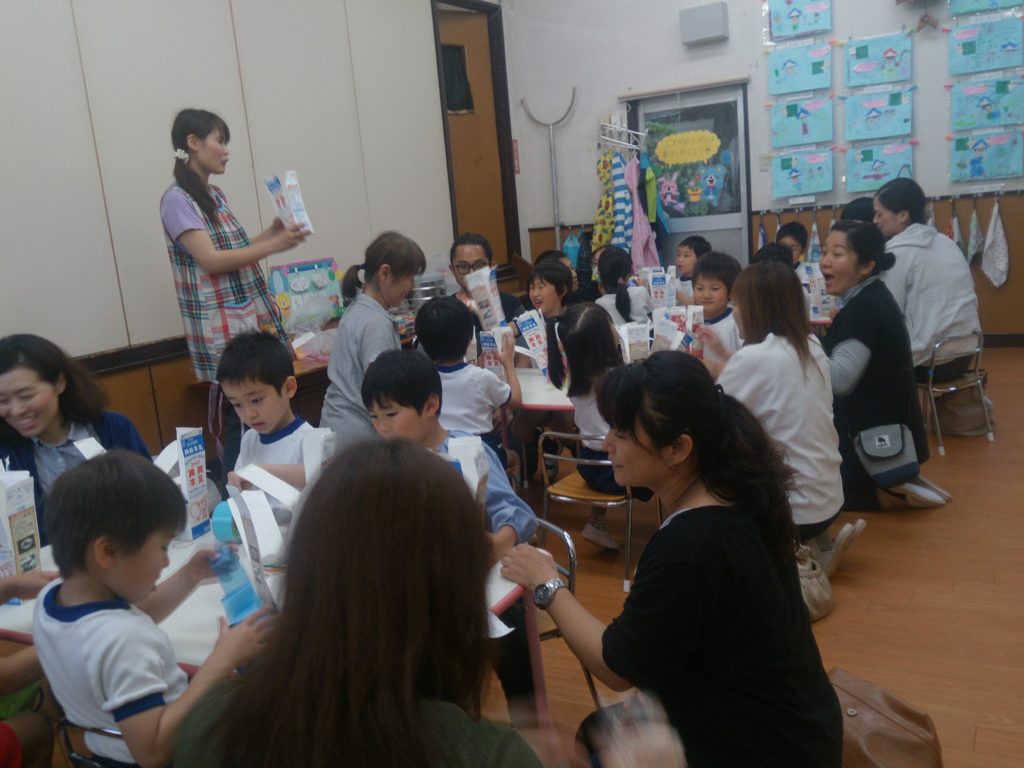 今日は生憎の雨でしたが、園児たちは、保護者の方が来てくれたことで大変うれしそうでした。 保育参観の後には、園児たちの4月・5月の様子を撮ったビデオ上映を行いました。 -