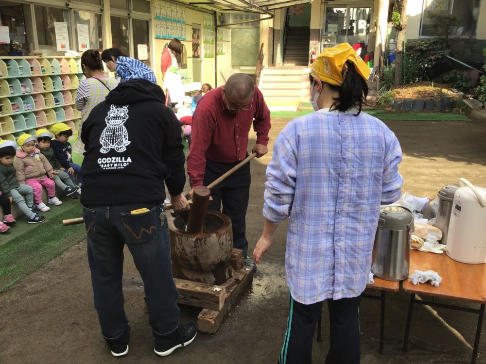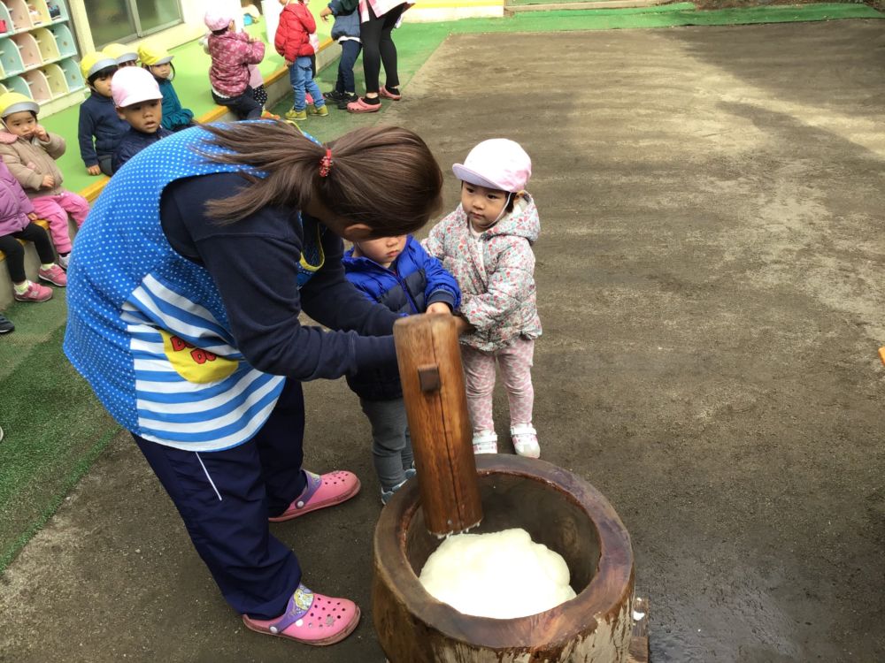 冬餅つき会 餅つき会 投稿:2020年01月17日 | 更新:2022年01月13日 今年も餅つき会を開催いたしました。 園児たちは、蒸している蒸籠や、杵・臼にも興味津々でした。 園長が餅をついている様子をしっかり見ていました。 いつも、苦手で食べないという食材も残さず、おかわりといっている園児が多くてびっくりしました。 もも組 餅つき会 餅米を蒸している様子 園長が餅つきの準備をしている様子