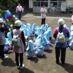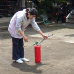 避難訓練の説明後、初期消火の模擬訓練を行い、避難訓練を終えました。
