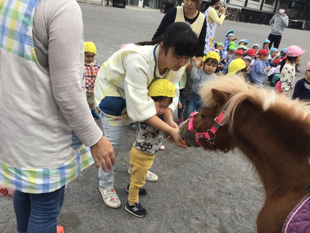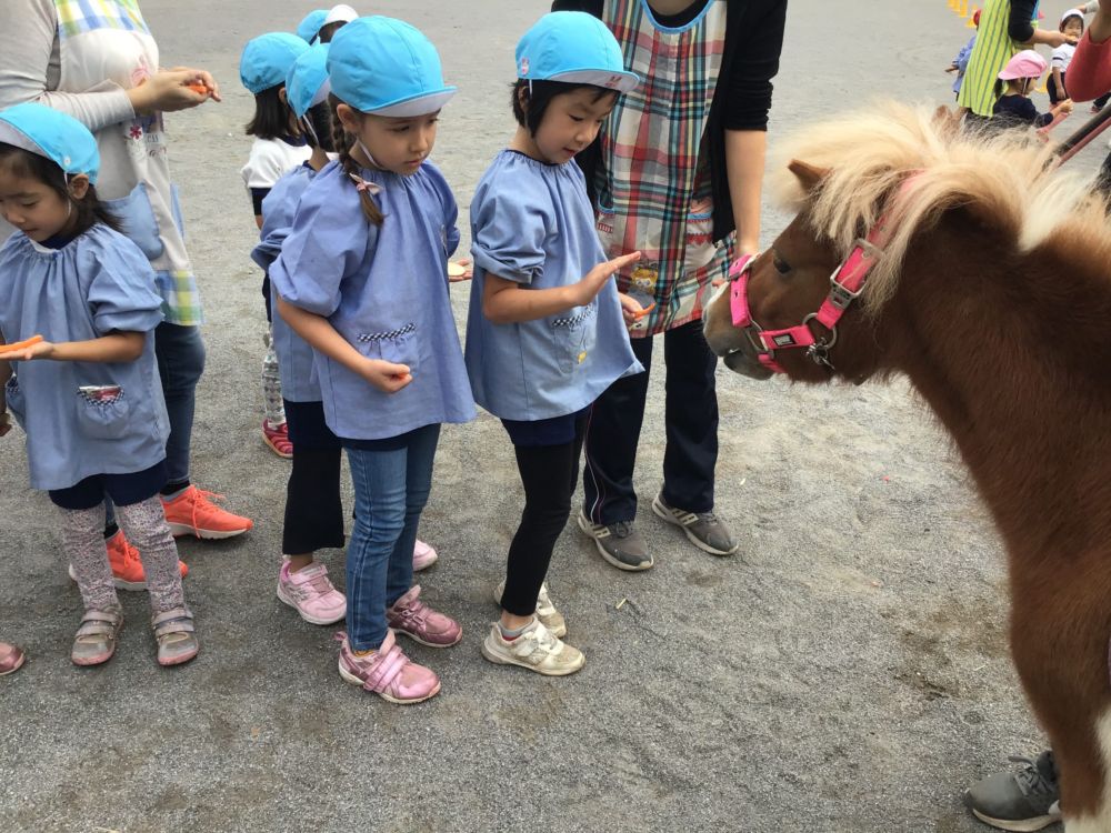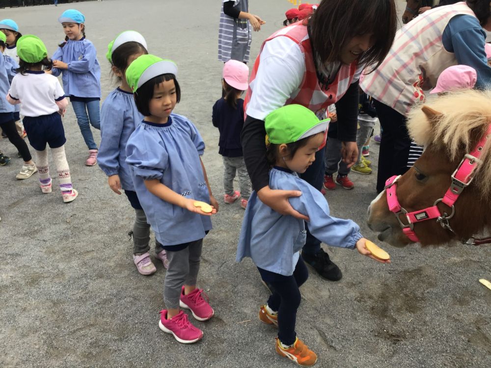 ポニーたちに、餌をあげる様子は、園児たちによって、まちまちで、怖がっている子もいれば、怖がる様子もなく、どんどんと近づいてしまう園児もいて、保育士の方が、ドキドキしました。